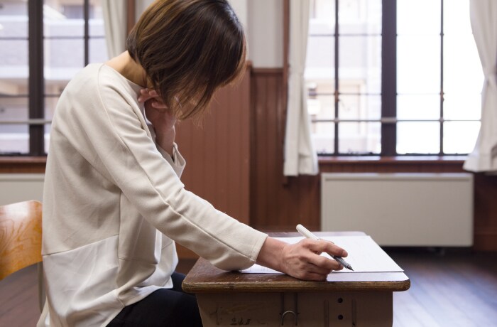 スラスラと書き上げる問題もあれば、ジッと筆が止まるときも。
