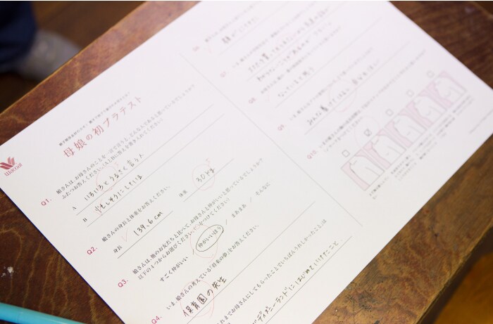 デートの前にお母さんにはテストを受けてもらいました。内容は、娘さんの学校生活やからだのことに関する問題です。
