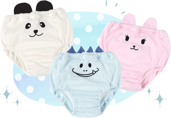 トイレトレーニングパンツ【COX711】は、立体の耳がついたデザイン。お子さまにも「パンダ(怪獣・うさぎ)のパンツあるよ~」とお声かけがしやすいです。