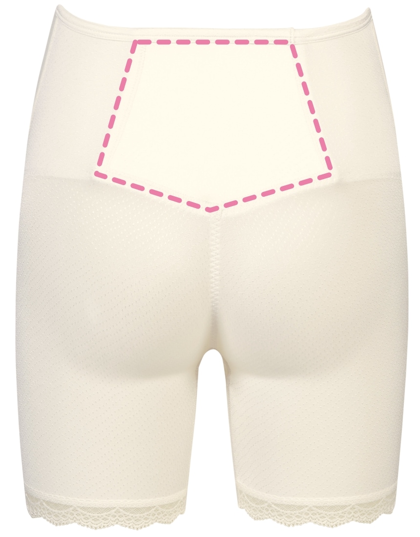 裾部分はヘム使いなどでくいこみにくくアウターにひびきにくいので、外出時のお洋服もきれいに着ることができます。裏マチ付きなので1枚での着用も可能です。