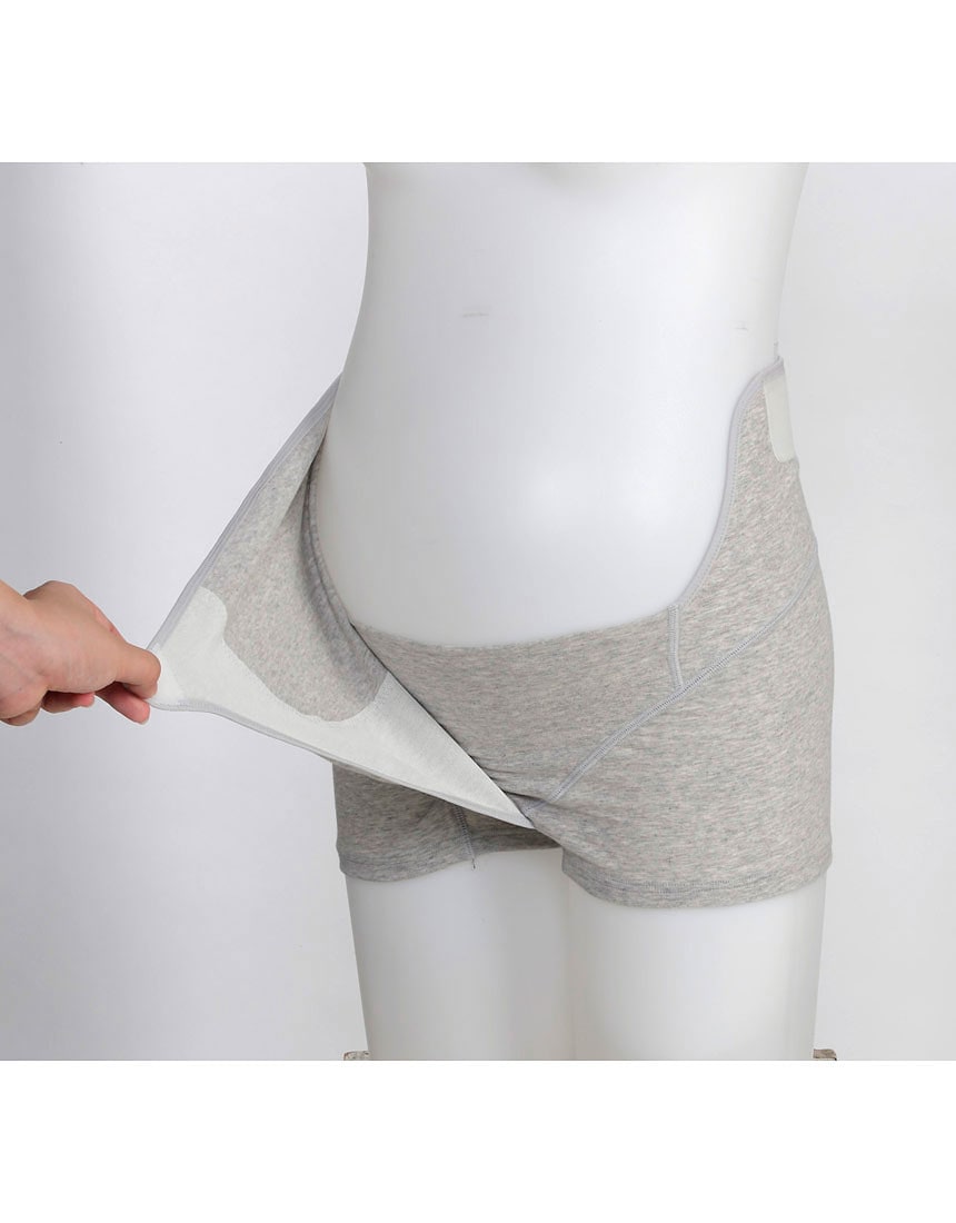 妊婦さんに使いやすい設計がうれしいほどよいサポート感はもちろん、両サイドの面ファスナーを外すとおなか部分が開く優秀ボトム。検診時に大活躍してくれます。