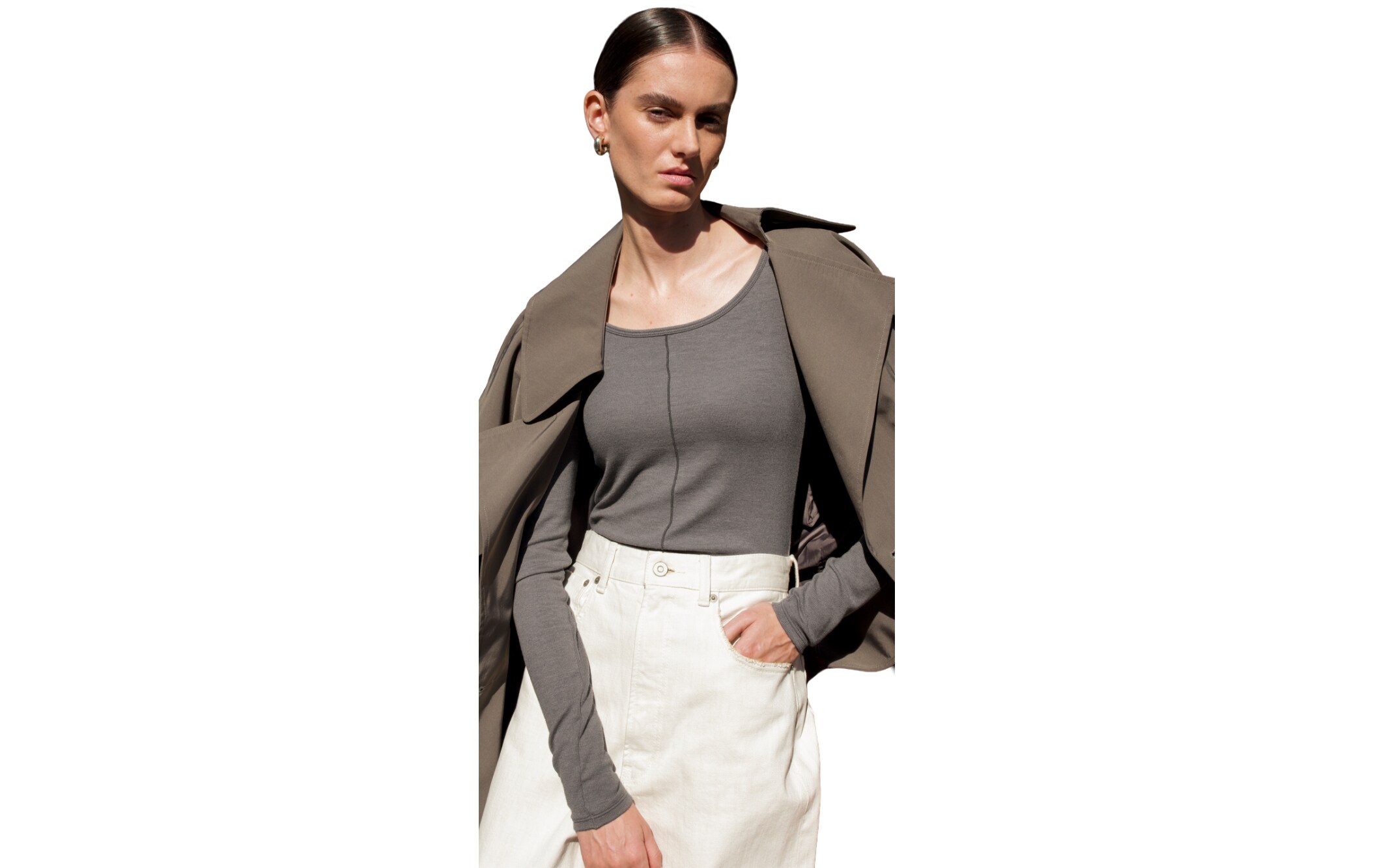 重ねずに着られる一枚が、シルエットを美しく整え、