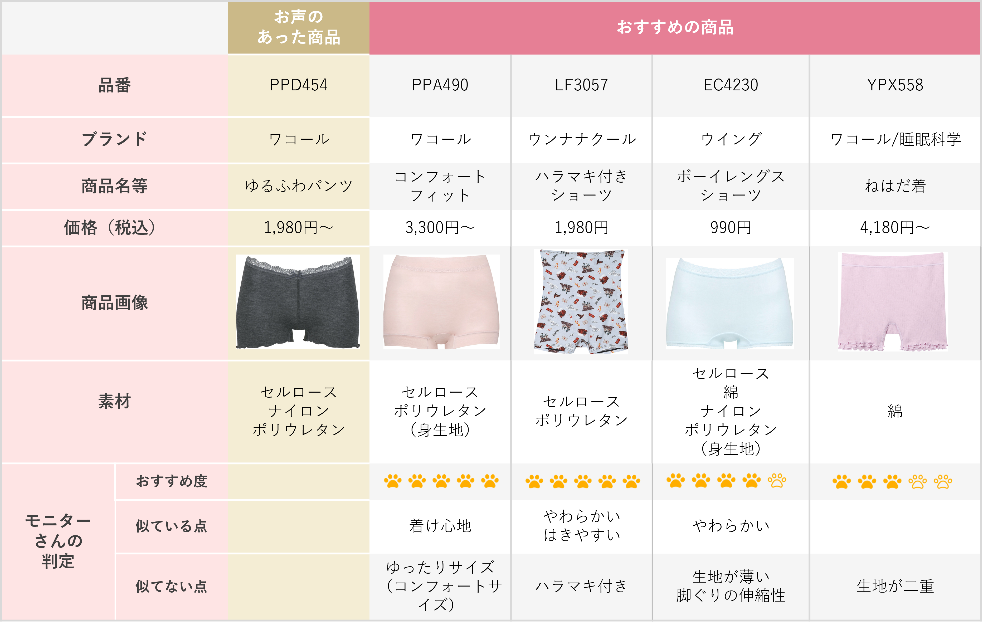 PPD454とは着用感が異なるとの評価でした